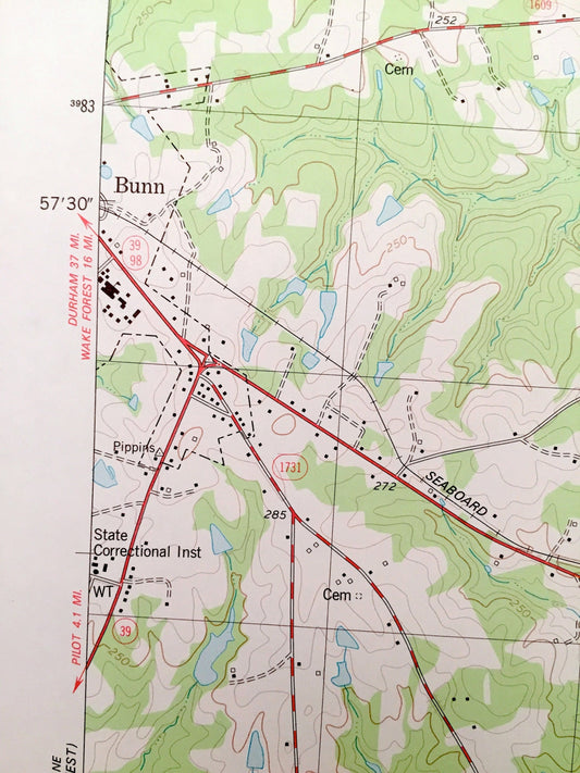 Antique Bunn, North Carolina 1978 US Geological Survey Topographic Map – Franklin, Nash County, Seven Paths, Daddysville, Lake Sagamore, NC
