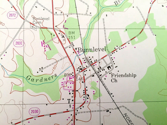 Antique Bunnlevel, North Carolina 1956 US Geological Survey Topographic Map – Senter, Harnet, Linden, Fonville, Walkertown, Harnett County