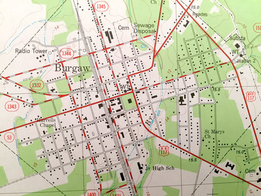 Antique Burgaw, North Carolina 1981 US Geological Survey Topographic Map – Murray Town, Van Eden, St Helena, Pender County, Cape Fear, NC
