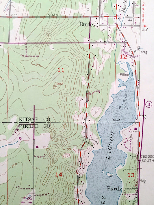 Antique Burley, Washington 1953 US Geological Survey Topographic Map – Kitsap Co, Pierce Co, Bethel, Wauna, Purdy, Horseshoe Lake