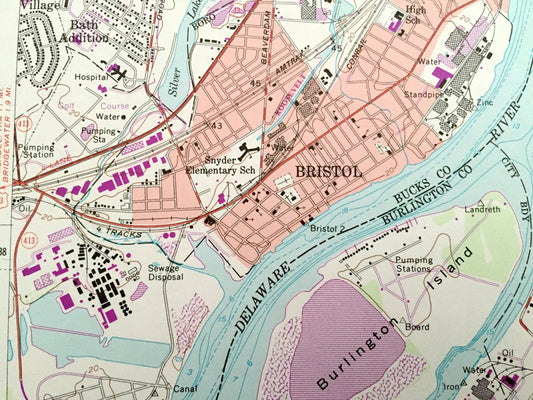 Antique Burlington, New Jersey 1955 US Geological Survey Topographic Map – Florence, Mount Holly, Springfield, Bucks, Bristol, Pennsylvania