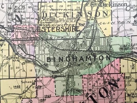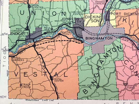 Antique Broome County, New York 1941 Historical Atlas Map – Binghamton, Lisle, Whitney Point, Deposit, Windsor, Lestershire, Sanford, NY