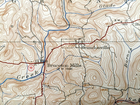 Antique Bruceton, West Virginia 1933 US Geological Survey Topographic Map – Preston County, Kingwood, Sutherland, Rockville, Afton, Wharton