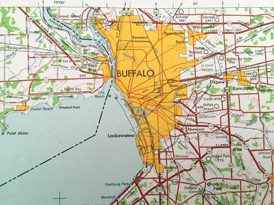 Antique Buffalo, New York 1960 US Geological Survey Topographic Map – East Aurora, Hamburg, Batavia, Warsaw, Lancaster, Jamestown, Ontario