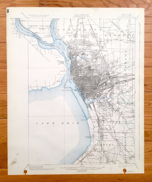 Antique Buffalo, New York 1901 US Geological Survey Topographic Map – Tonawanda, West Seneca, Hamburg, Cheektowaga, Amherst, Grand Island NY
