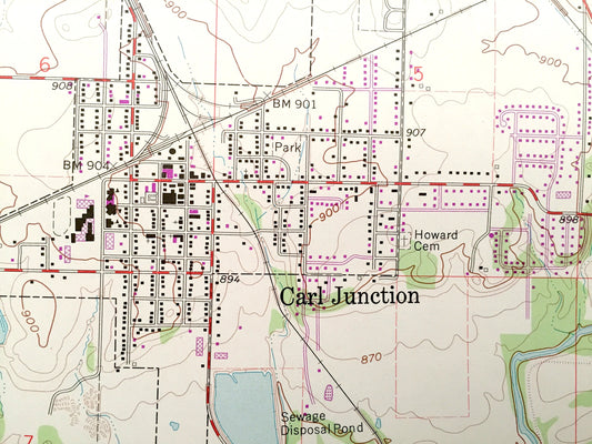 Antique Carl Junction, Missouri & Shawnee, Kansas 1963 US Geological Survey Topographic Map – Smithfield, Klondike, Galena, Joplin