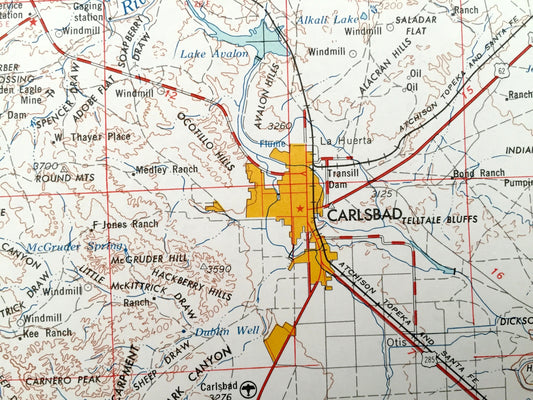 Antique Carlsbad, New Mexico 1954 US Geological Survey Topographic Map – Loving, Otis, Artesia, Lake Arthur, Hope, Alamogorde Pecos River NM