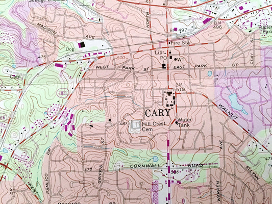 Antique Cary, North Carolina 1973 US Geological Survey Topographic Map – Durham, Wake County, William B Umstead State Park, Morrisville, NC