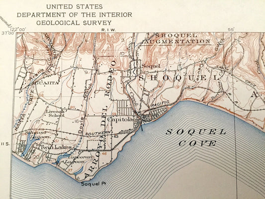 Antique Capitola, California 1912 US Geological Survey Topographic Map – Monterey Bay, Soquel, Watsonville Santa Cruz Castroville Manresa CA