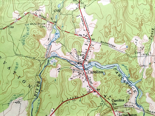 Antique Carolina, Rhode Island 1953 US Geological Survey Topographic Map – Washington County, Hopkinton, Charlestown, Richmond, Westerly, RI