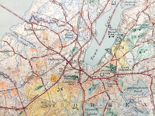 Antique Cape Cod, Orleans, Massachusetts 1944 US Geological Survey Topographic Map – Eastham, Brewster, Nauset Kingsbury Beach Barnstable MA