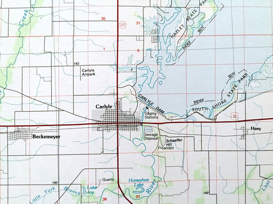 Antique Carlyle Lake, Illinois 1985 US Geological Survey Topographic Map – Madison, St Clair, Clinton, Bond, Fayette, Marion County, IL