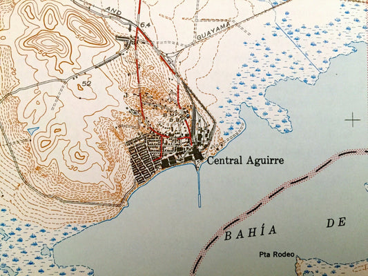 Antique Central Aguirre, Puerto Rico 1945 US Geological Survey Topographic Map – Salinas, Guayama, Coquí, Jobos, Las Mareas, Infierno PR