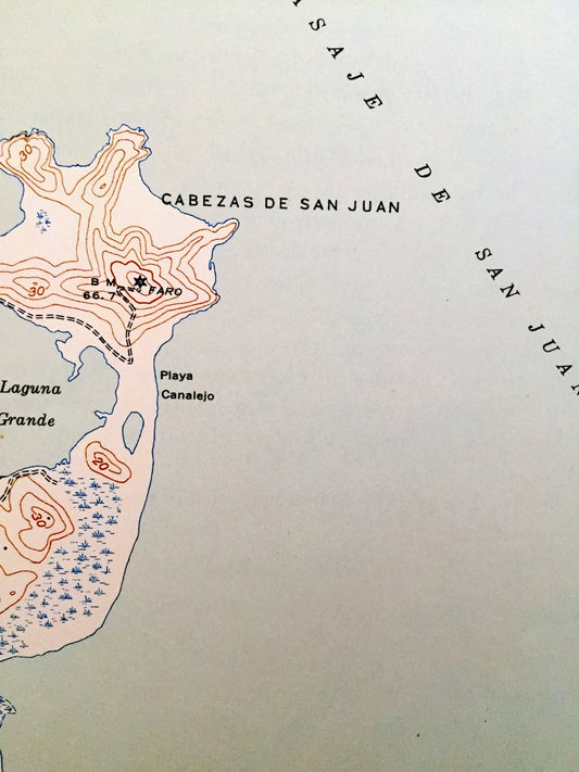 Antique Cayo Icacos, Puerto Rico 1945 US Geological Survey Topographic Map – Fajardo, La Cardillera, Pasaje de San Juan, Cabezas, Vieques PR