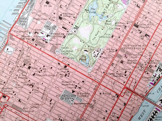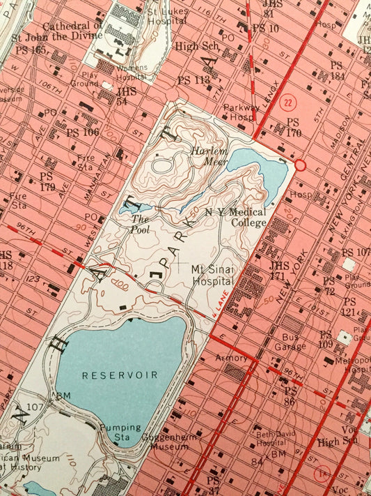 Antique Central Park, Manhattan, New York 1956 US Geological Survey Topographic Map – New Jersey, Hudson River, Bronx, Queens, Harlem
