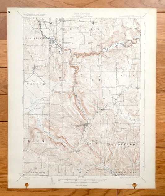 Antique Cattaraugus, New York 1923 US Geological Survey Topographic Map – Erie County, Gowanda, Perrysburg, East Otto, Little Valley, NY