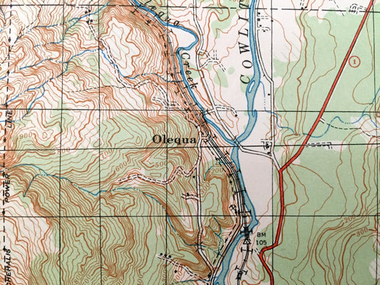 Antique Castle Rock, Washington 19341 US Geological Survey Topographic Map – Cowlitz, Lewis County, Vader, Olequa, Toledo, Winlock Toutle WA