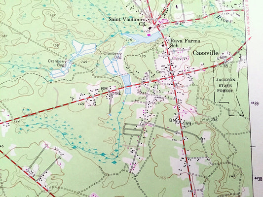 Antique Cassville, New Jersey 1957 US Geological Survey Topographic Map – Jackson, Manchester, Fort Dix, Lakehurst, Monmouth Ocean County NJ
