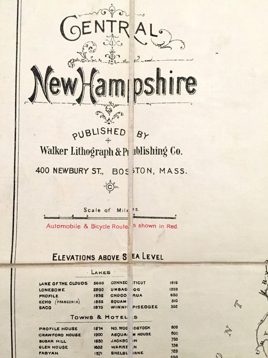 Antique Central New Hampshire 1916 George H Walker & Co Automobile Map – White Mountains, Winnipesaukee, Squam, Newfound Lake, Hanover, NH