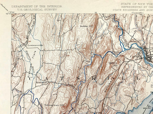 Antique Catskill, New York 1895 US Geological Survey Topographic Map – Saugerties, Hudson, Greenport, Germantown, Livingston, Clermont, NY
