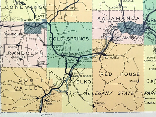 Antique Cattaraugus County, New York 1941 Historical Atlas Map – Little Valley, Randolph, Gowanda, Salamanca, Franklinville, Olean, NY