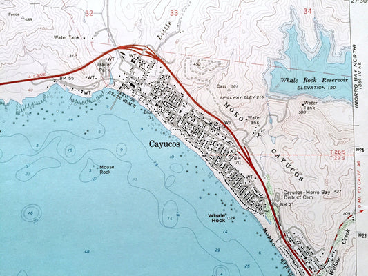 Antique Cayucos, California 1965 US Geological Survey Topographic Map – San Luis Obispo County, Morro Strand Beach, Harmony Headlands, CA