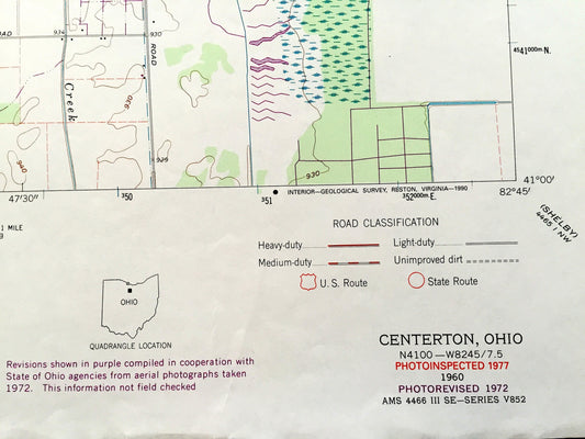 Antique Centerton, Ohio 1960 US Geological Survey Topographic Map — Huron, Seneca County, Reed, Norwich, Venice, Richmond, Omar, OH