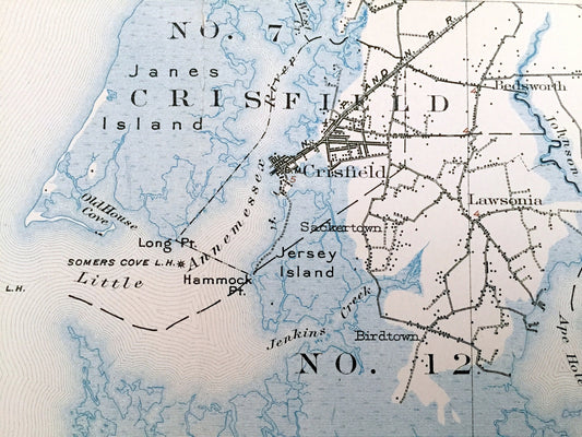 Antique Chesapeake Bay, Maryland 1903 US Geological Survey Topographic Map – Crisfield, Asbury, Lawsons, Smith Island, Eastern Shore, MD