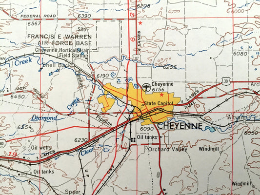 Antique Cheyenne, Wyoming 1954 US Geological Survey Topographic Map – Laramie, Bosler, Pine Bluffs, Burns, Gleason, Diamond, La Grange
