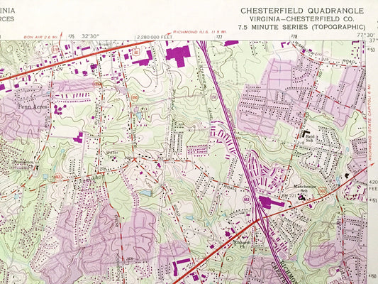 Antique Chesterfield, Virginia 1963 US Geological Survey Topographic Map – Richmond, County, Pocahontas State Forest, Park, Swift Creek VA