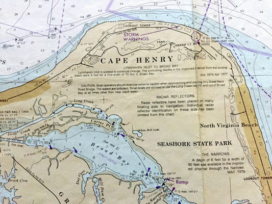 Antique Chesapeake Bay 1979 US Coast Guard Nautical Map – Cape Charles to Norfolk Harbor, Virginia Beach, Newport News, York River, Henry VA