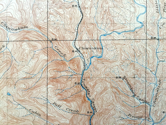 Antique Chiwaukum, Washington 1904 US Geological Survey Topographic Map – Chelan County, Wenatchee River, Entiat Mountains, Nason, Merritt