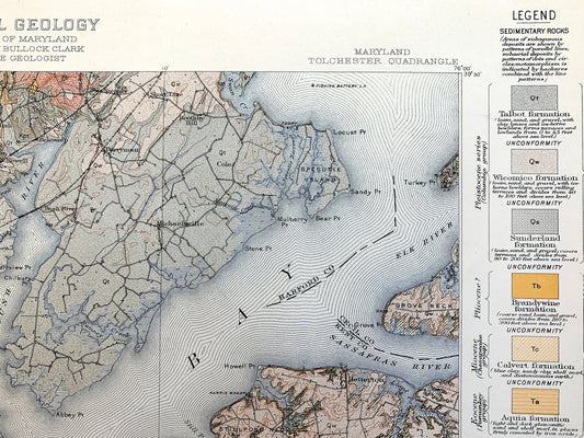 Antique Chesapeake Bay, Maryland 1915 US Geological Survey Topographic Map – Rock Hall Baltimore Abingdon Aberdeen Tolchester Kent County MD