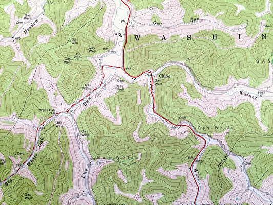Antique Chloe, West Virginia 1966 US Geological Survey Topographic Map — Calhoun, Braxton, Clay, Roane County, Washington, Birch, Geary, WV