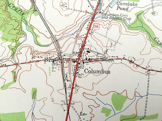 Antique Columbus, New Jersey 1957 US Geological Survey Topographic Map – Mansfield, Chesterfield, Springfield, New Hanover, Fort Dix, Sharp
