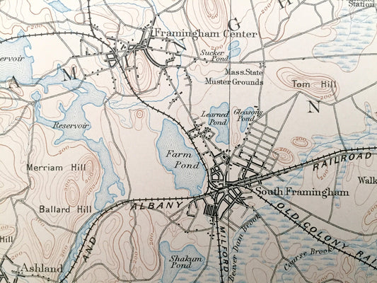 Antique Concord, Massachusetts 1894 US Geological Survey Topographic Map – Waltham, Framingham, Bedford, Wellesley, Natick, Walden Pond, MA