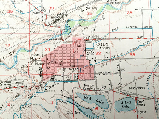 Antique Cody, Wyoming 1962 US Geological Survey Topographic Map – Powell, Greybull, Basin, Lovell, Cowley, Garland, Shoshone National Forest