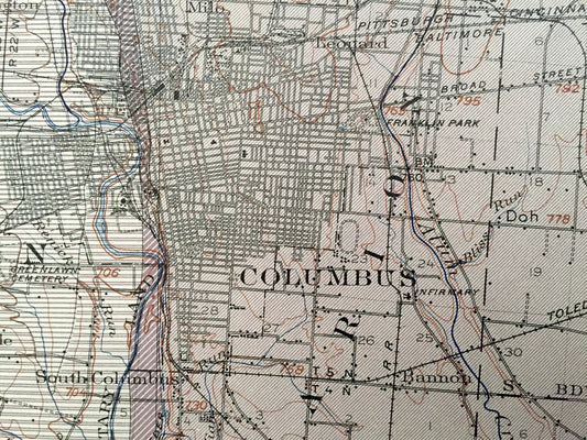 Antique Columbus, Ohio 1912 US Geological Survey Topographic Map – Dublin, Clinton, Olentangy, Upper Arlington, Westerville, Grove City