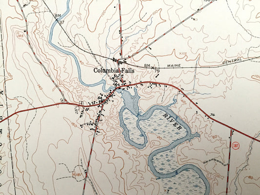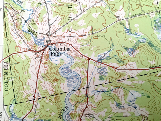 Antique Columbia Falls, Maine 1951 US Geological Survey Topographic Map – Washington County, Centerville, Jonesborough, Addison, Columbia ME