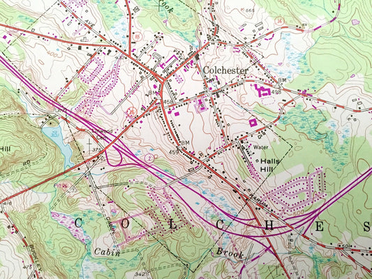 Antique Colchester, Connecticut 1953 US Geological Survey Topographic Map — Tolland, New London, Middlesex County, Hebron, Lebanon, Salem CT