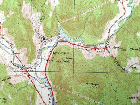 Antique Colrain, Massachusetts 1945 US Geological Survey Topographic Map – Franklin County, Leyden, MA, Windham County, Guilford, Halifax VT