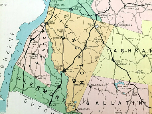 Antique Columbia County, New York 1941 Historical Atlas Map – Hudson, Canaan, Kinderhook, Hillsdale, Chatham, Ancram, Livingston, Ghent, NY