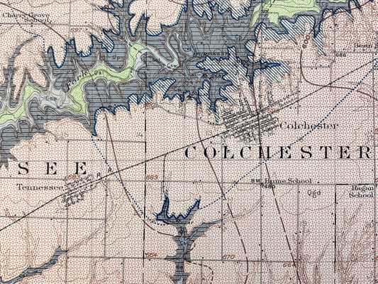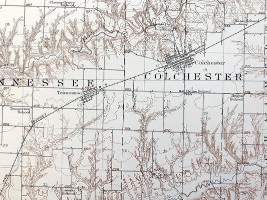 Antique Colchester, Illinois 1913 US Geological Survey Topographic Map – Plymouth, Fountain Green, McDonough, Schuyler, Hancock County IL
