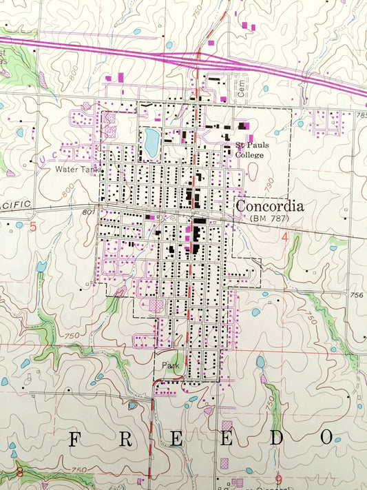 Antique Concordia, Missouri 1962 US Geological Survey Topographic Map – Freedom, Grover, Lafayette, Johnson County, Ralph Martha Perry MO