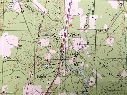Antique Creola, Alabama 1941 US Geological Survey Topographic Map – Mobile County, Salco, Axis, Hatters, Saraland, Whistler, Smithtown, Akka