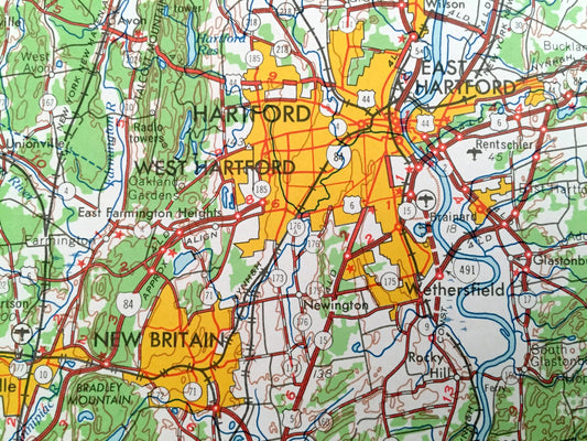 Antique Connecticut 1965 US Geological Survey Topographic Map – Hartford, Manchester, New Haven, New Britain, Bristol, Bridgeport, Norwich