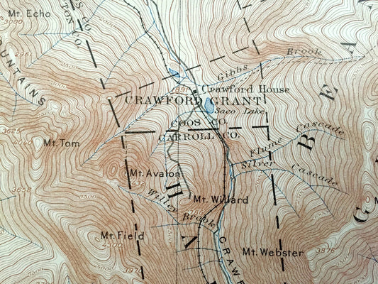 Antique Crawford Notch, New Hampshire 1896 US Geological Survey Topographic Map – Coos, Carroll, Grafton County, Bartlett White Mountains NH