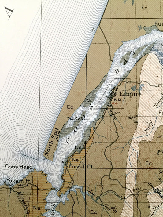 Antique Coos Bay, Oregon 1900 US Economic Geological Survey Map – Coquille, Cape Arago, North Bend, Empire, Bandon, Riverton, Parkersburg