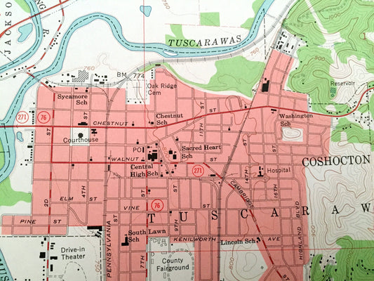 Antique Coshocton, Ohio 1961 US Geological Survey Topographic Map – Coshocton County, Mill Creek, Crawford, Keene, White Eyes, Tuscarawas OH