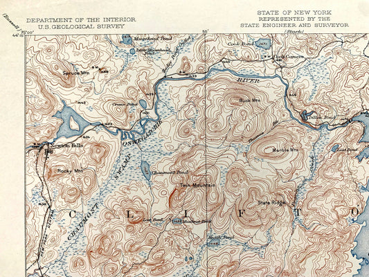 Antique Cranberry Lake, New York 1919 US Geological Survey Topographic Map – Adirondacks, Wanakena, Fine, Webb, Clifton, Newtown Falls, NY